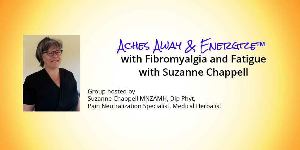 Click the button below to take you to the Aches Away & Energize Group with Suzanne in Facebook, for more free tips and weekly Live Videos on how to reduce pain (and more symptoms), and wake up feeling energized to enjoy life again.